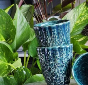 Elevate your daily ritual with these stunning, handcrafted ceramic tumblers. Featuring a unique, deep teal drip glaze over a heavily textured body, these cups are as beautiful as they are functional. Perfect for coffee, tea, or even a small dessert. Made with love in our home studio!